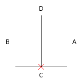 Move the left foot to C forming a left back stance toward D while executing a middle right hand knife-hand strike to D