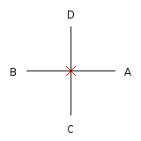 - Move the right foot to A turning counter clockwise to form a left diagonal stance toward D at the same time left arm thrusting back elbow to C supporting the left forefist with the right palm and turning the face to C.